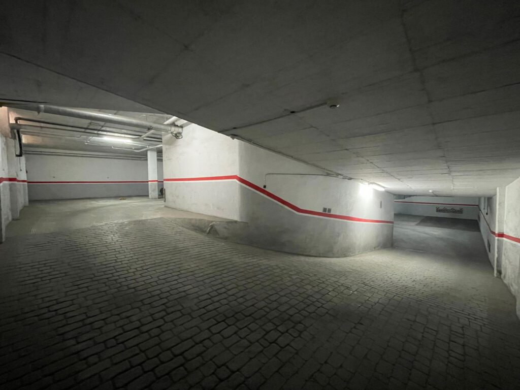 Garage Platz befindet sich auf der Etage -2, bequeme Rampen nach unten zu gehen. Lift von Floor -2 mit Zugang zum Gebäude. Sehr bequem.