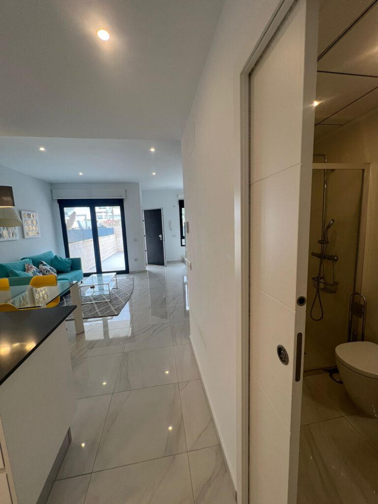 Genießen Sie modernes Wohnen unter der spanischen Sonne. Diese hochwertige Wohnung im Stil eines modernen Reihenhauses überzeugt durch ihre großzügige Raumaufteilung über drei Ebenen, sonnige Außenflächen sowie eine ruhige Wohnanlage mit Pool. Die Immobilie verbindet zeitgemäßes Design mit mediterranem Lebensgefühl und bietet ideale Voraussetzungen für entspannte Aufenthalte an der Costa Blanca.